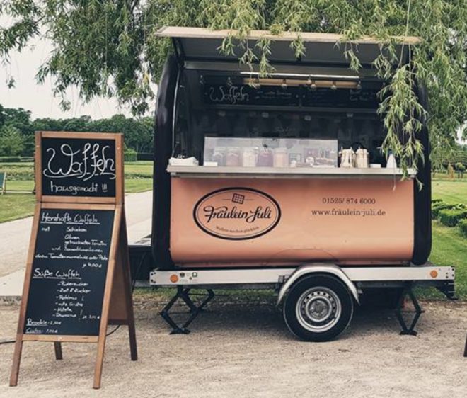 Da ist er wieder, der treue Hänger „Quentin“ mit Fräulein Juli. Nach der Premiere bei der letzten Erlebnisnacht freuen wir uns wieder auf klassische süße Waffeln mit Puderzucker, Apfelmus oder Schokocreme und herzhafte Waffeln. Mit Schinken, Oliven oder Thunfischcreme und Kapern sind einfach der Hit!